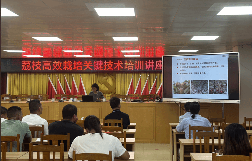 培训会上,三位专家倾囊相授,带来 “含金量” 十足的农业知识 “干货”。宋佳歌教授以《食用菌高产高效种植技术》为主题,结合大量实践案例,从食用菌菌种的科学选择、栽培环境的精准调控,到病虫害的有效防治,进行了深入浅出的讲解,毫无保留地将提升食用菌产量与品质的核心技术传授给农户;陆美莲副教授聚焦《蔬菜绿色高效种植技术》,着重介绍了生态种植模式、绿色防控手段以及科学施肥方法,引导农户摒弃传统种植思维,踏上绿色可持续的农业发展新征程;张荣副教授围绕《荔枝高效栽培关键技术要点》,从荔枝果园的精细化管理、科学的修剪整形,到保花保果的关键措施、病虫害的综合防控,进行了全面系统的阐述,为荔枝种植户送上专业实用的技术指南。与会听众全神贯注,认真聆听,不时低头记录重点内容,遇到疑问时踊跃提问,专家们则耐心细致地一一解答,现场互动氛围热烈非凡。