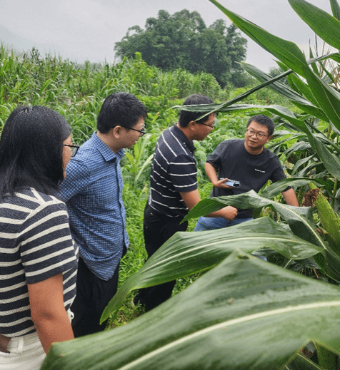 2025年6月12日-14日,仲恺农业工程学院刘凯、李春梅、何沐阳老师、研究生莫朝晖组成的科技特派员团队邀请我校玉米育种、种植专家刘鹏飞教授深入云浮罗定市罗平镇、船步镇,针对当地“太阳花”玉米品种种植中存在的品质不均、农户信心不足等痛点问题,开展技术指导,为产业提质增效注入“科技动能”。