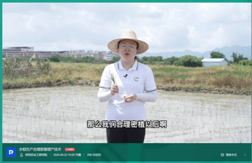 此外,特派员团队组织相关企业人员观看了由仲恺农业工程学院开展的“水稻生产合理密植增产技术”直播课程。该直播详细讲解了广东省水稻生产合理密植增产技术指导意见,以及如何通过优化品种搭配、推动集中育秧、强化田间管理等技术措施提高水稻单产。