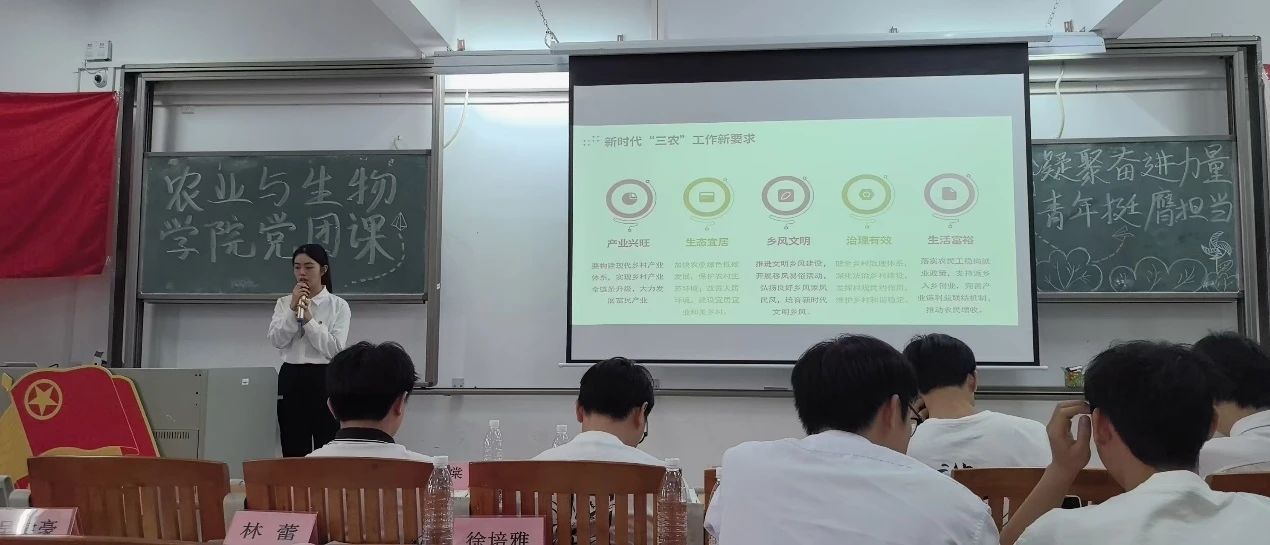 随后,谢依琳同学就《争做新农人,建功新时代》进行主题说课,她从“三农”工作的政策解读、农业发展新事态和新时代“新农人”三个方面逐步剖析时代青年如何成为新农人,她深情地呼吁,同学们应珍惜时光,努力学习专业知识,积极参与社会实践,将个人理想融入乡村振兴的伟大事业中,秉承“注重实践,扶助农工”的校训精神,争做新时代的新农人,用青春和汗水在祖国大地上绘就一幅幅壮丽的画卷。