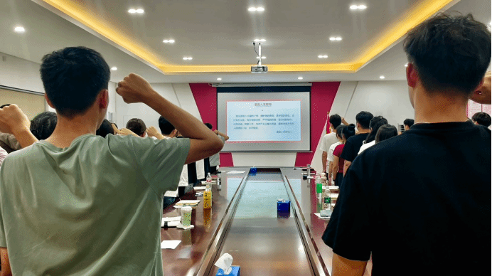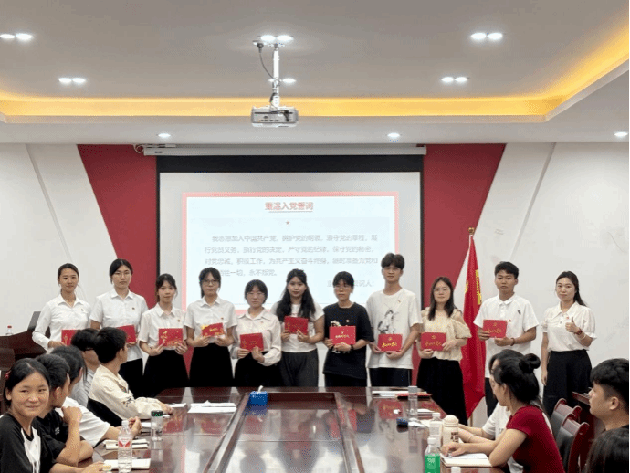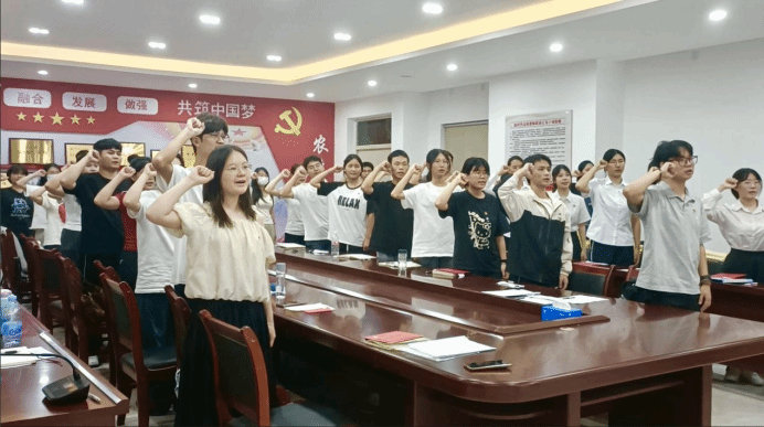 "我志愿加入中国共产党,拥护党的纲领,遵守党的章程......" 在邝健睿的带领下,全体党员重温入党誓词。铿锵有力的誓言,表达了党员们对党的忠诚和为党的事业奋斗终身的决心。