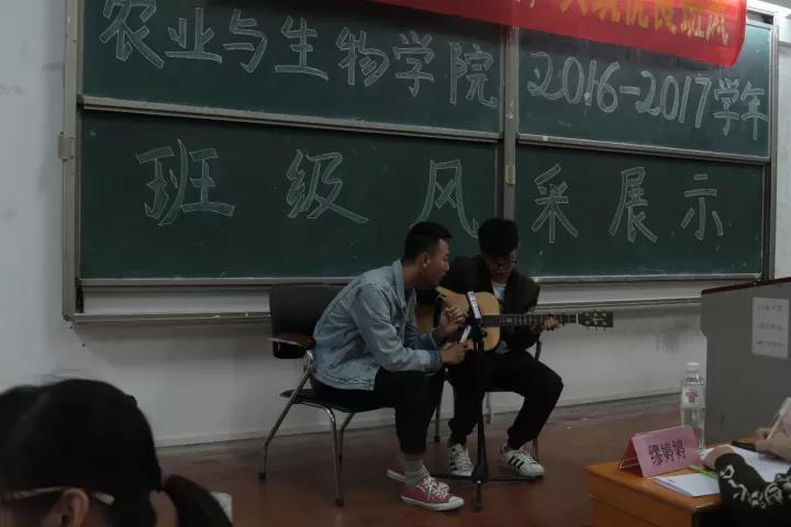 奏唱国歌之后,班风展示正式拉开帷幕。各个优秀班级代表按顺序上台为大家演示精心制作的PPT,他们从班级建设、思想建设、学风建设以及文体活动等方面介绍了班级建设成果以及班级成员生活中的点点滴滴。PPT展示后,各班还表演了精心准备的节目,有弹唱《成都》,集体演唱《歌唱祖国》、《奇迹再现》、《奔跑》,以及朗诵《中国少年强》等等,更有展示班集体积极、团结面貌的剪辑视频。