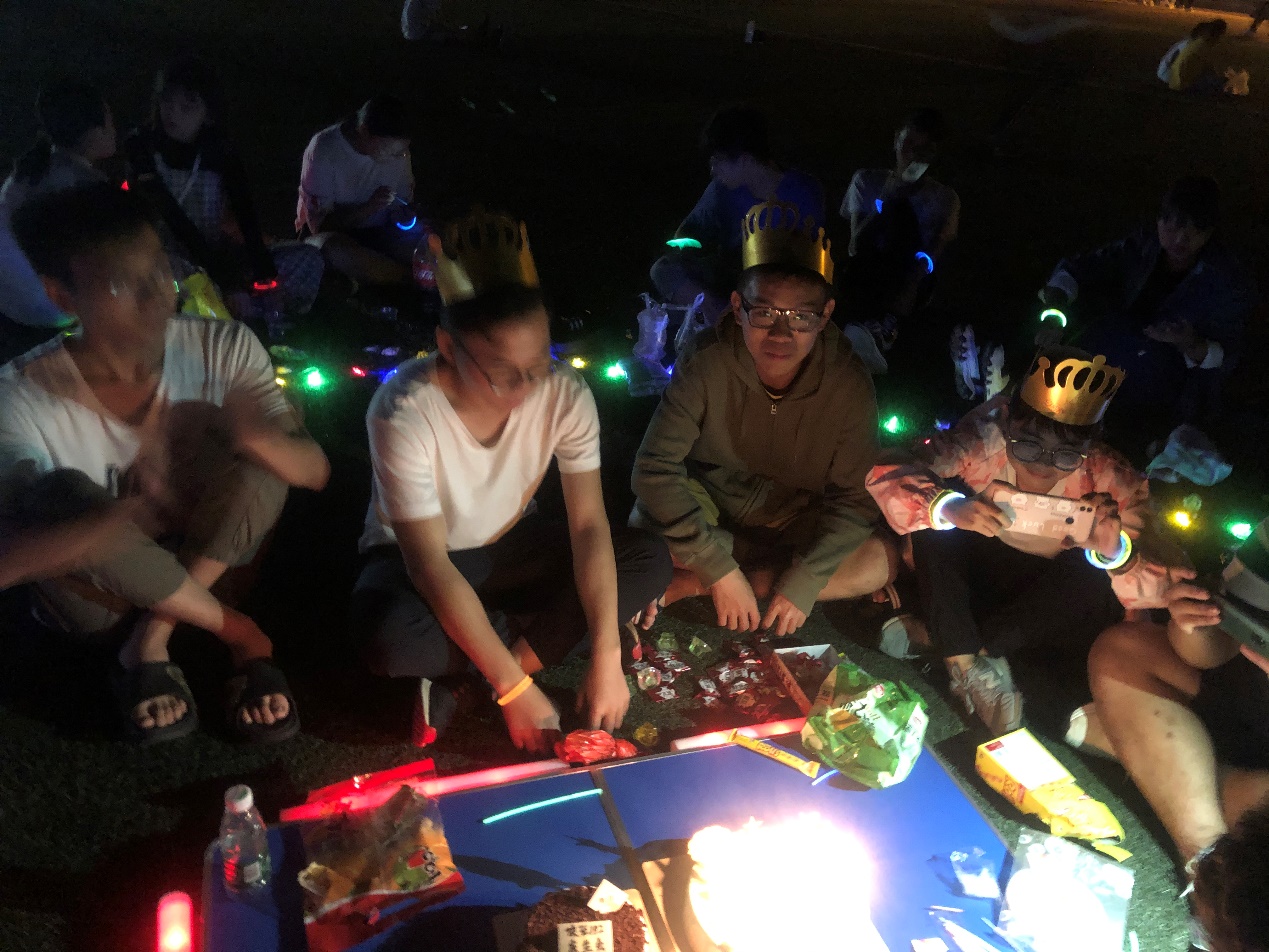 为了加强班级之间的情谊,每到班级有人临近生日时,同学们就会帮忙筹办生日会。同学们为我们班级的小寿星们庆生。大家在操场挥起荧光棒,唱着生日歌,场面极其活跃欢快。想必这段回忆将成为我们大学四年心中的珍宝!