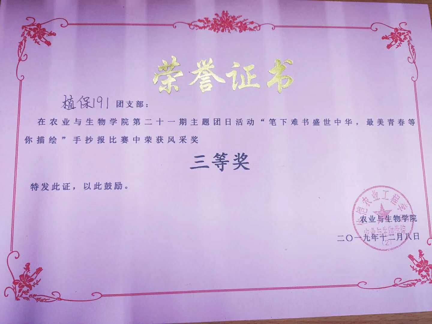 这一年,班级同学在团支书的组织下共开展了三次团日活动,第一个学期开展了两次,其中省级的团日活动荣获校优、院优;校级的团日活动荣获yl88858永利集团院内二等奖;第二个学期只开展了一次云团日活动,获得了院的推优资格。接下来的图片,是这三次团日活动里的一些小活动的记录。
