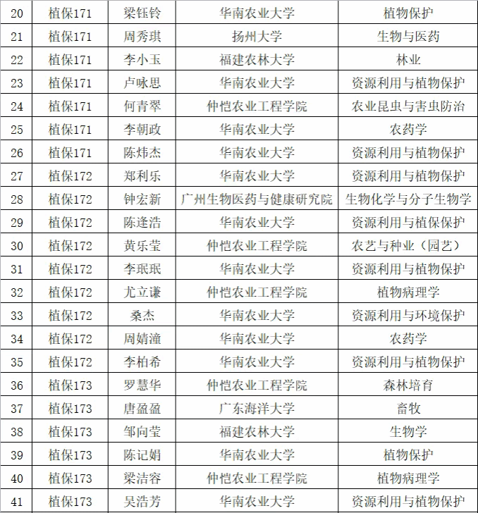 今年我院毕业生445人,共有191人考研,107人被正式录取,报考率42.9%,考研录取率达56%。考研学子录取学校涵盖中山大学、西北农林科技大学、南京农业大学、华南师范大学、暨南大学、华南农业大学、北京体育大学、海南大学、汕头大学、福建农林大学等院校。