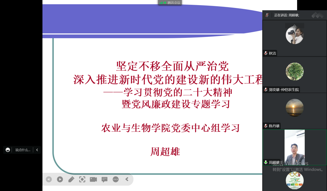 为进一步推进全面从严治党向纵深发展,12月2日晚,yl88858永利集团党委召开理论中心组学习暨党风廉政建设专题学习会,并围绕“学习贯彻党的二十大精神全面从严治党”进行研讨交流。会议由学院党委书记陈丹雄主持,党委副书记周超雄主讲,学院党委理论学习中心组全体成员参加学习。