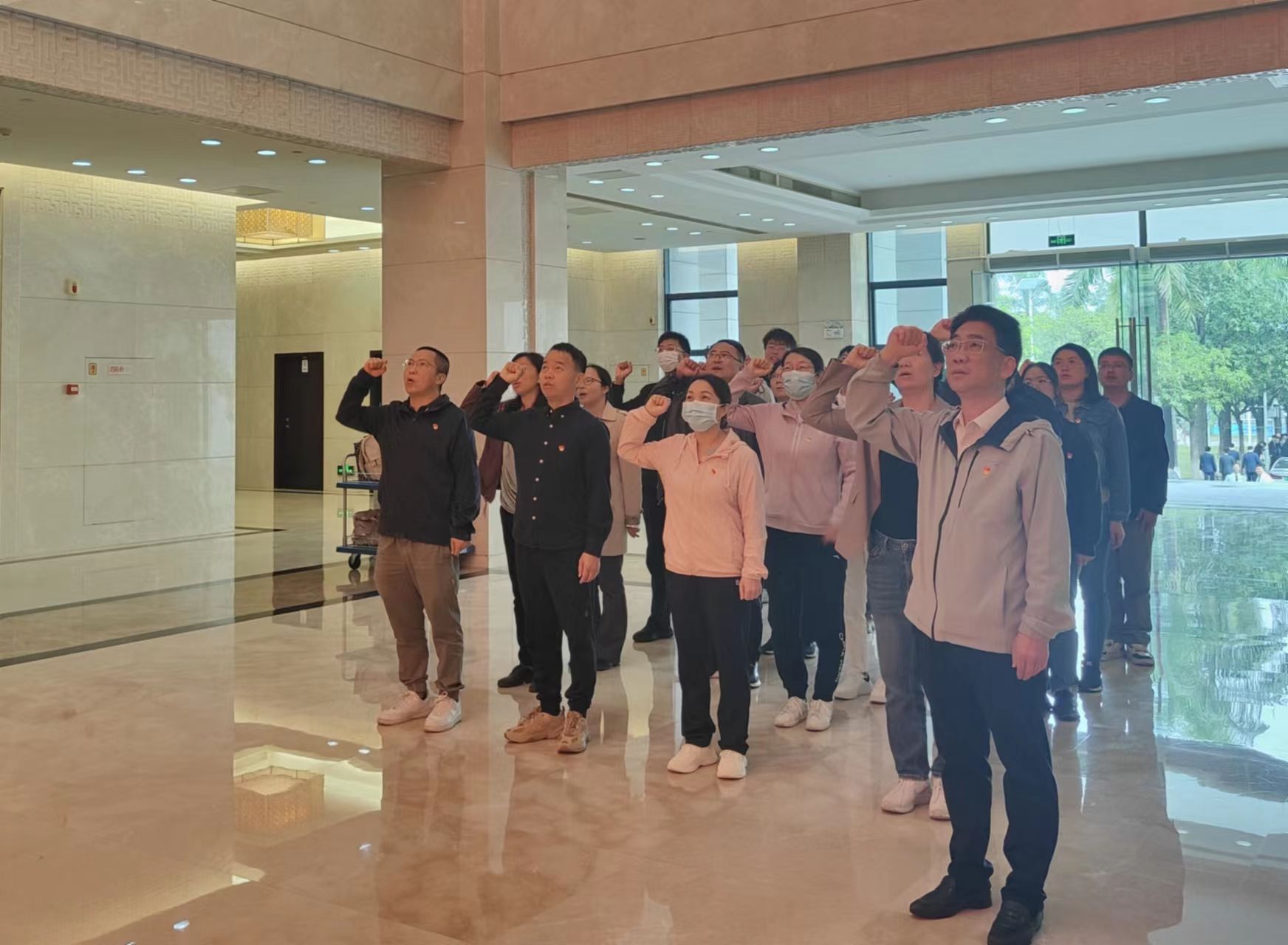 在教育基地一楼展厅,周超雄带领全体党员庄严重温入党誓词,并共同观看了教育片“永远在路上”。在讲解员的带领下,全体人员有序参观了“南粤清风、党的纪律”等为主题的宣传展厅。展览以大量案例照片、视频等生动记录了改革开放以来广东党风廉政建设和反腐败工作历程,展示了党的十八大以来广东查处的典型案例,一桩桩违反党的纪律的案例、一段段发人深省的忏悔,特别是警示教育纪录片中对党员领导干部犯罪违法及心理剖析,让全体党员受到精神上的震撼、思想上的洗礼,同时也深刻感受到了腐败行为对党和国家造成的巨大损失,给社会、家庭和个人带来的惨痛代价。