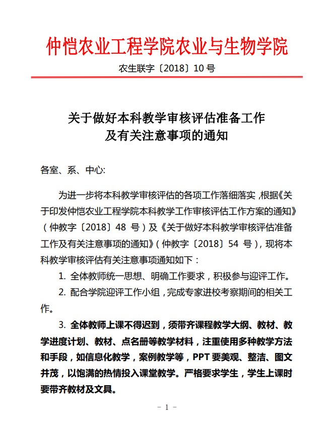 农生联字〔2018〕10 号仲恺农业工程学院yl88858永利集团