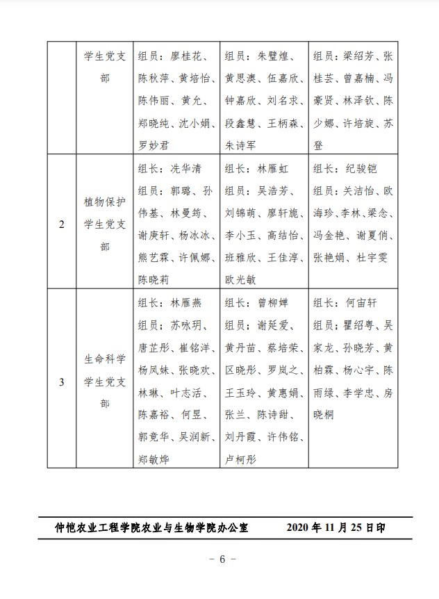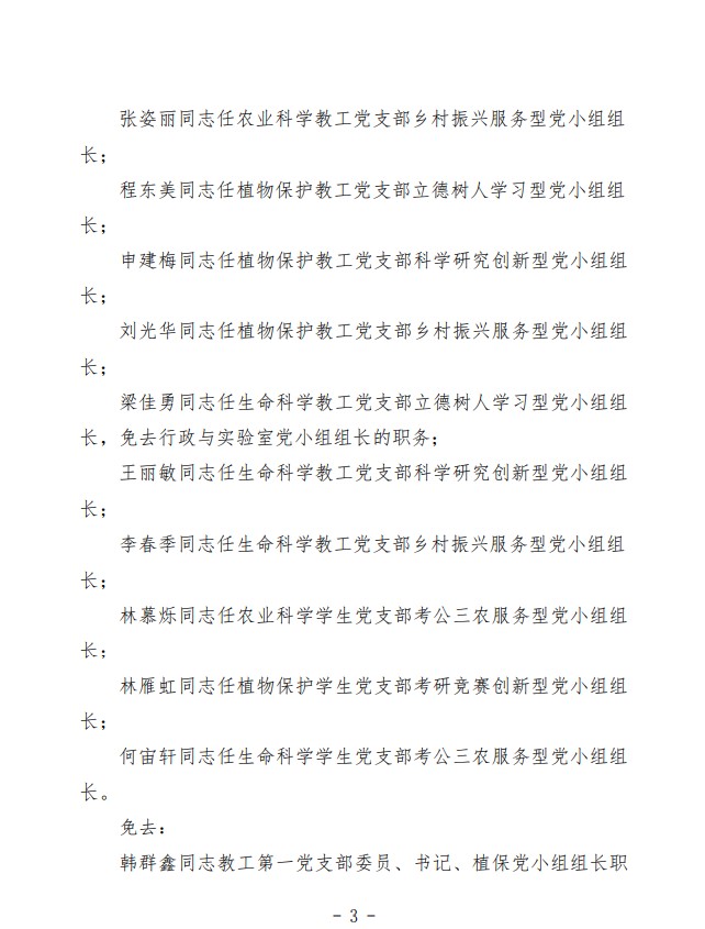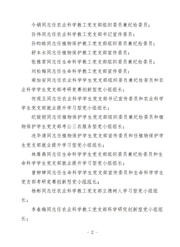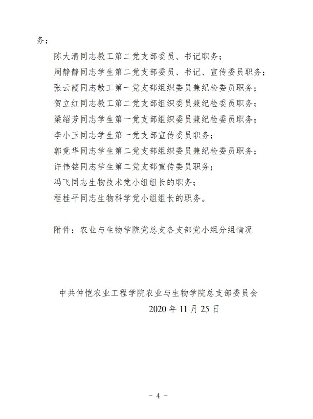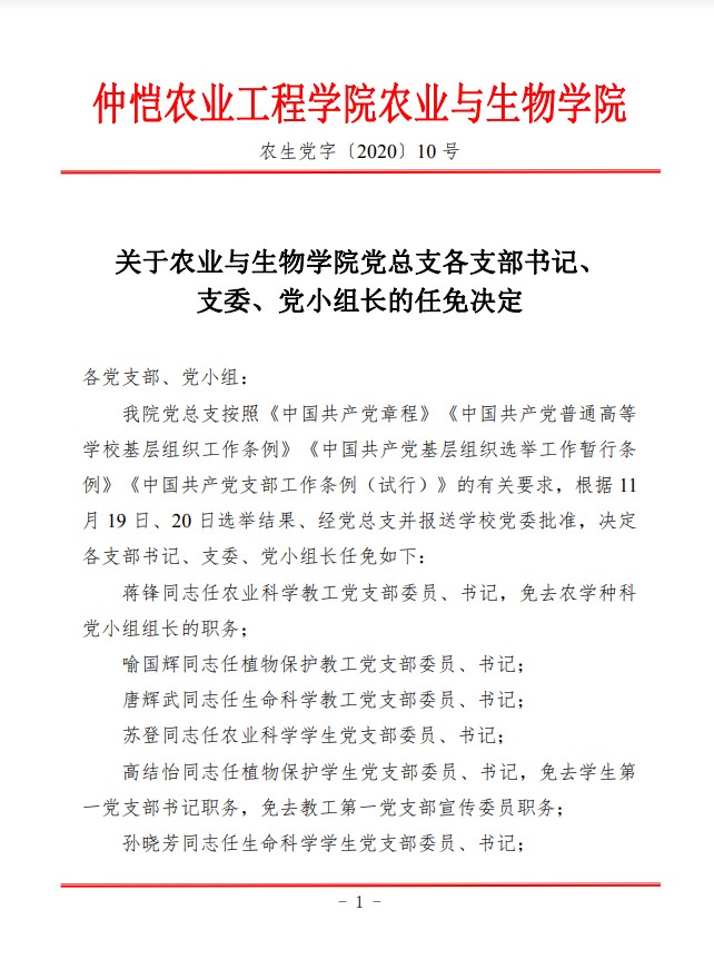 农生党字〔2020〕10号-关于yl88858永利集团党总支各支部书记、支委、党小组长的任免决定