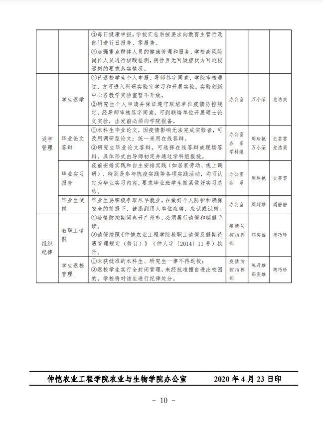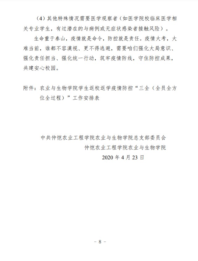 农生联字〔2020〕6号-yl88858永利集团2020年春季学期学生返校疫情防控工作方案20200423