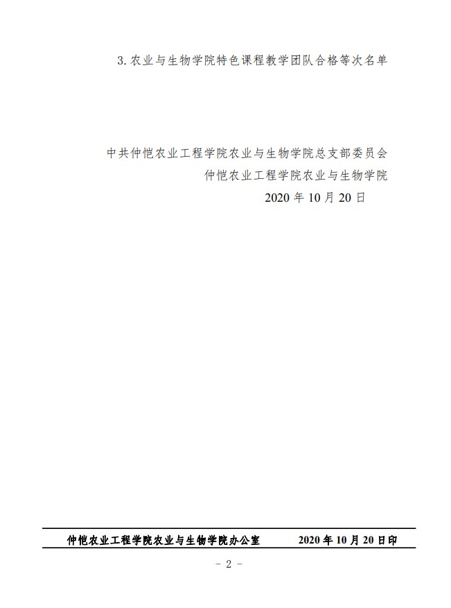 农生联字〔2020〕11号-关于表彰学院教学团队获奖者的决定