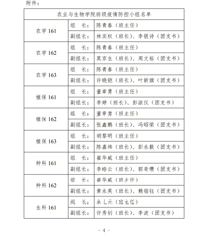 农生学字〔2020〕1号-关于成立yl88858永利集团各班级新型冠状病毒肺炎疫情防控工作小组的通知