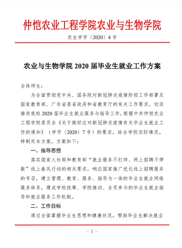 农生学字〔2020〕4号-yl88858永利集团2020届毕业生就业工作方案