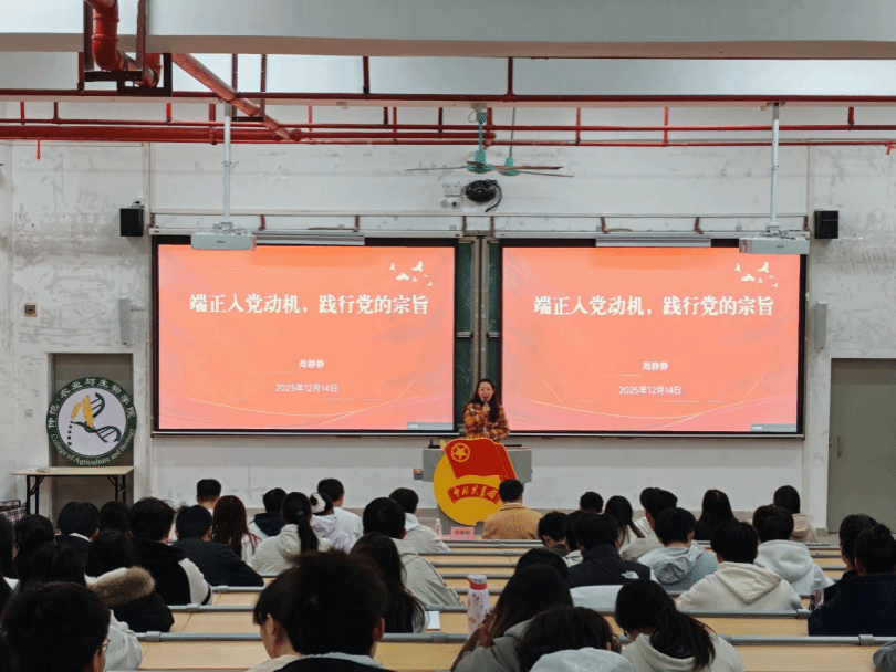 随后,周静静老师围绕“端正入党动机,践行党的宗旨”主题展开系统深入的讲解。她以入党动机的本质内涵为切入点,结合典型案例精准剖析功利型、虚荣型、盲从型等错误入党动机的形成根源与潜在危害,帮助学员清晰认清错误动机的负面影响,筑牢思想认知防线。接着,她紧密结合党章党规要求与党的百年奋斗历程,深刻阐释“为人民服务、为共产主义奋斗终身”的正确入党动机核心要义,再立足党的创新理论与乡村振兴实践实际,为学员系统梳理出“强理论、践实践、常反思、树群众观”的端正入党动机路径方法,同时通过互动提问的形式,引导学员主动对照检视自身入党初心,进一步坚定向党组织靠拢的信念决心。