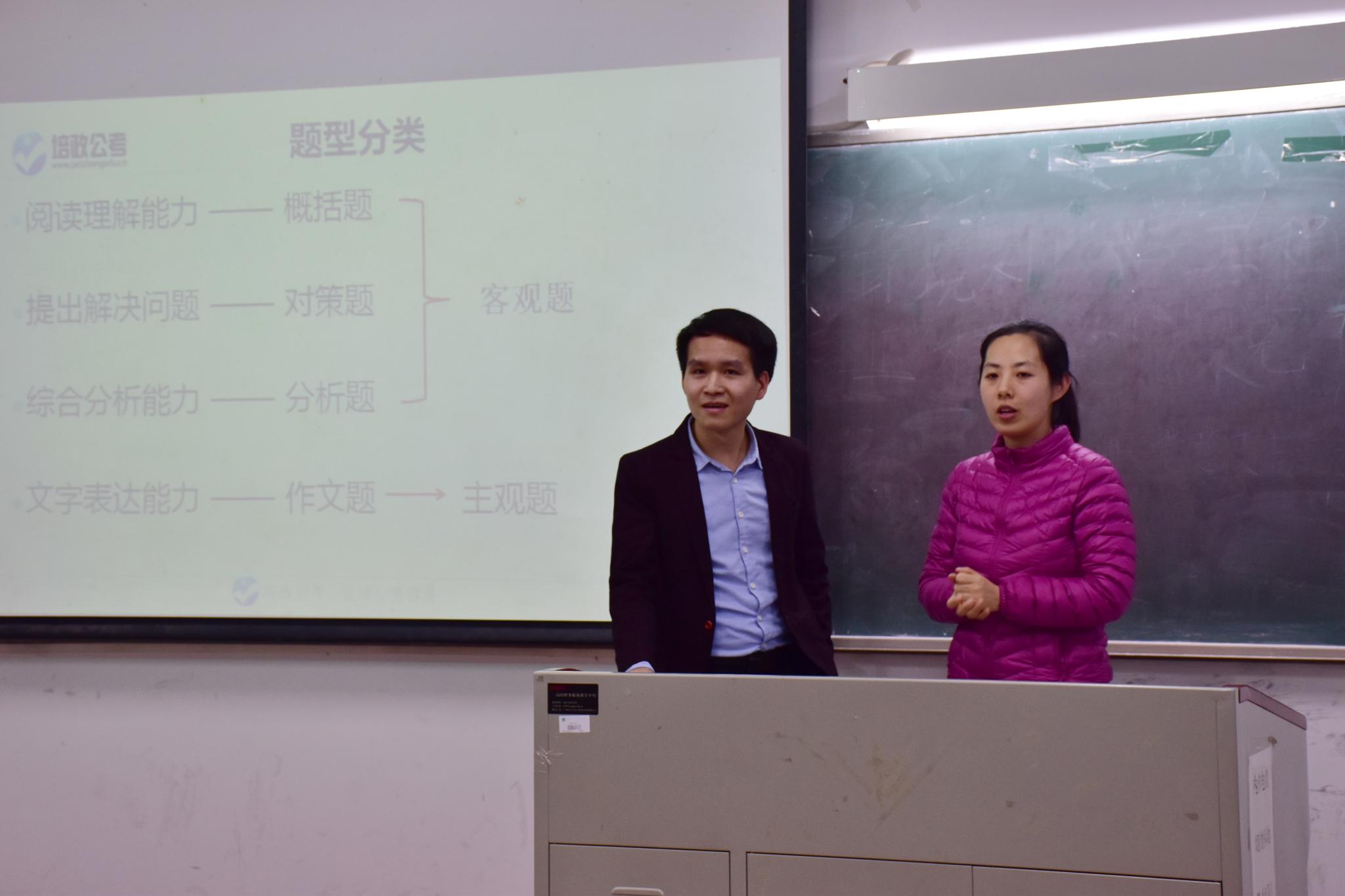 12月28日晚,yl88858永利集团为2014、2015级同学开设的公务员备考培训讲座在白云校区杨钊杨勋楼201室顺利举行。本场讲座由培政首席申论、面试讲师黄昊先生主讲,辅导员周静静老师出席。