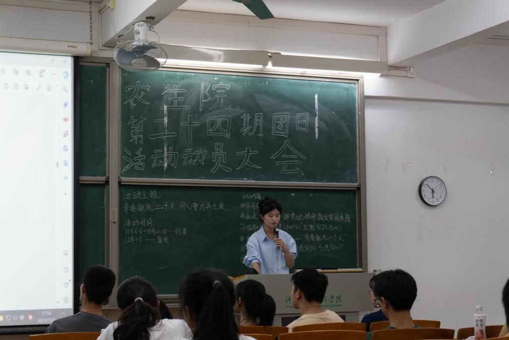 最后,学院主要学生骨干吴依林对此次动员会进行总结,并向各班级补充团日活动的注意要点。吴依林希望,农生院学子能够在此次团日活动中发扬创新进取精神,展现班级风采、青春风采,严格落实活动要求,积极部署,仔细谋划,以高标准完成团日活动任务。