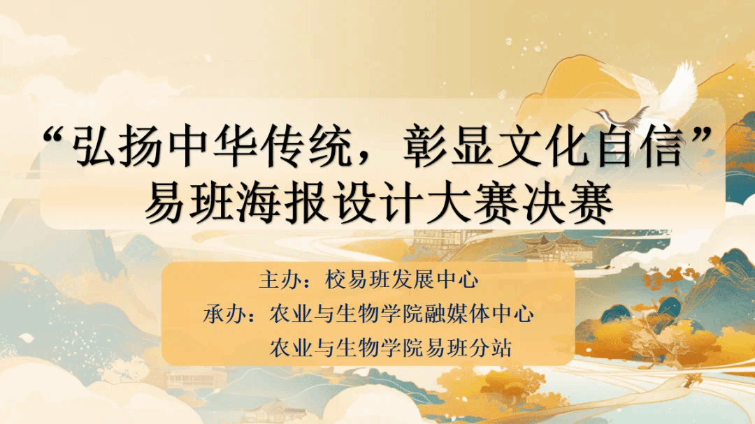 为倡导用社会主义核心价值观和中华优秀文明成果来培根铸魂、启智润心,并进一步丰富易班平台建设,5月24日晚,由校易班发展中心主办,yl88858永利集团融媒体中心、yl88858永利集团易班分站承办的以“弘扬中华传统,彰显文化自信“为主题的易班海报设计大赛决赛在白云校区综合楼D2小礼堂举行。出席本次活动的评委嘉宾有学生社区辅导员姜萌、数学与数据科学学院辅导员解延鑫、园艺园林学院辅导员刘月、yl88858永利集团辅导员邝健睿以及yl88858永利集团学生副书记主席主任团。