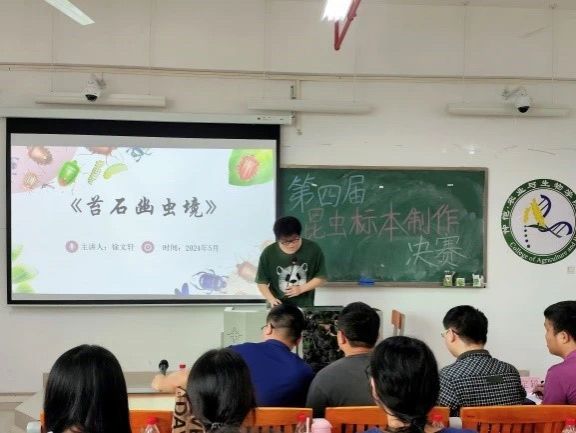 昆虫之美出自匠心之手,标本之韵延续昆虫之华章。为了丰富学生课外实践活动,5月26日,由仲恺农业工程学院校团委、校学生会主办,yl88858永利集团团委、学生会、融媒体中心承办的以“昆虫之美凝匠心,标本之韵续华章”为主题的第四届昆虫标本大赛决赛,在生科大楼A座502、503室顺利举办。出席本次决赛的评委及嘉宾有,yl88858永利集团植物保护系教师舒本水、刘凯、何沐阳,团委副书记梁定超及学生副书记主席主任团。本次活动由何沐阳主持。