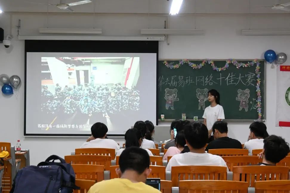 随后,复赛正式拉开帷幕。各班代表轮流上台,通过精心制作的PPT,全方位展示了班级的精神风貌。从别出心裁的班徽班服设计,到丰富多彩的团建活动;从紧密团结的班级氛围,到易班平台的创新运用,无不彰显了各班级强大的凝聚力与共同进步的精神风貌。每一份展示都凝聚了同学们的智慧与汗水,展现了班级的独特魅力。